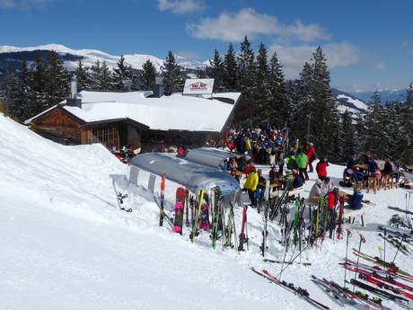 Im ganzen Skigebiet verteilt warten gemütliche Hütten auf die Skifahrer. Man findet vom Selbstbedienungsrestaurant bis zum Gourmetrestaurant alles. Zahlreiche Sonnenterrassen und gemütliche Skihütten laden zum Verweilen ein. In einigen exklusiven Hütten trifft man auch mal einen Promi, wie z.B. im Berggasthof Sonnbühel oder in der Toni Alm.