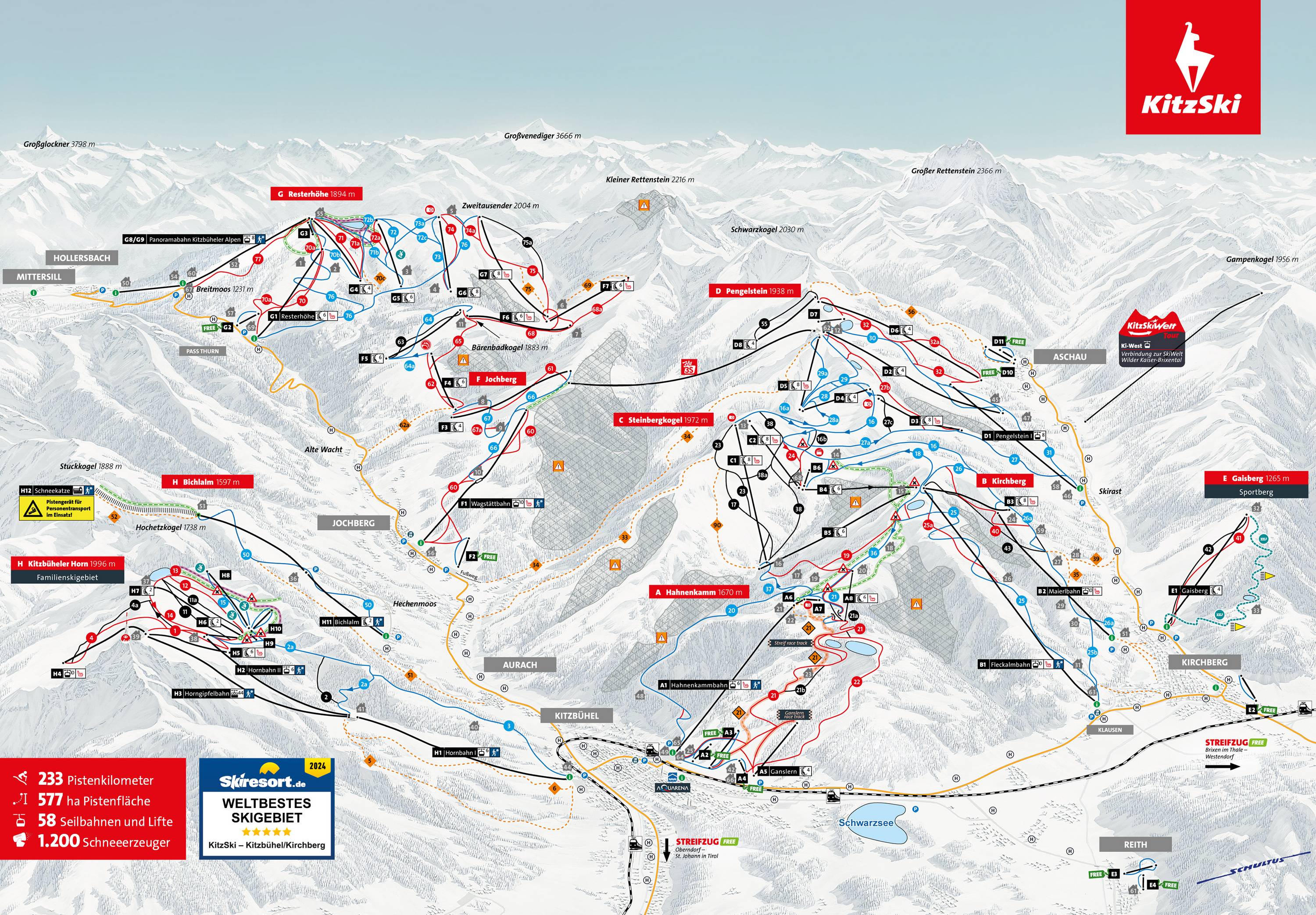 Pistenplan KitzSki – Kitzbühel/Kirchberg Saison 2025/2026