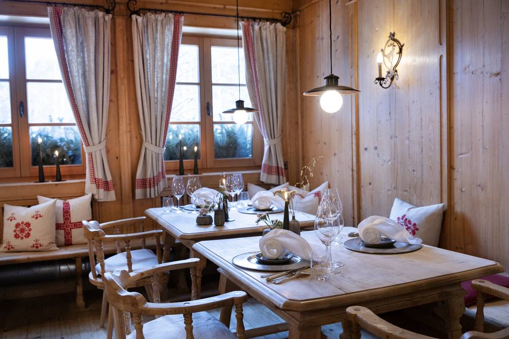 Kulinarisch wird im Gourmethotel einiges geboten. Der Küchenchef Bernhard Hochkogler, ausgezeichnet mit zwei Hauben (15 Punkte Guide Gault Millau) zaubert täglich ein mehrgängiges Gourmetmenü. Es werden kulinarische Höhepunkte kredenzt. Ein reichhaltiges Salat- und Vorspeisenbuffet rundet das Angebot ab. In einer der alten Fleckalmbahn Gondeln kann man auch ein Überraschungsmenü auf Vorbestellung genießen. Das reichhaltige Frühstücksbuffet mit frischen Produkten von heimischen Bauern und Produzenten lässt einen wunderbar in den Tag starten.