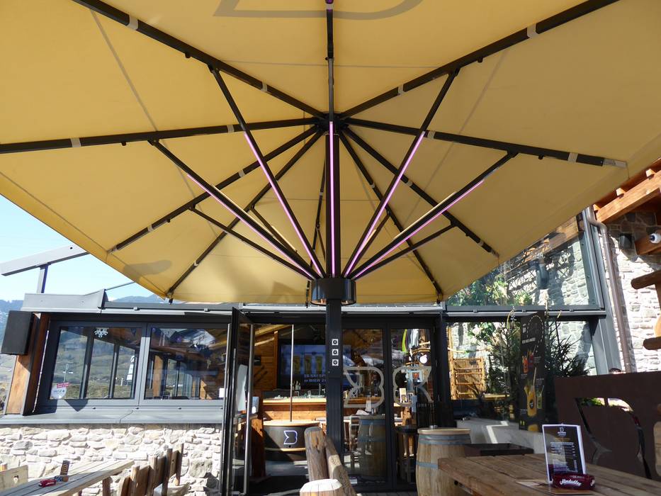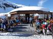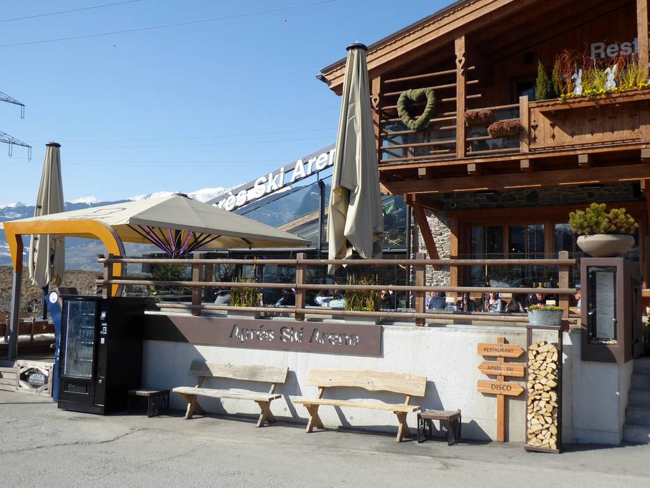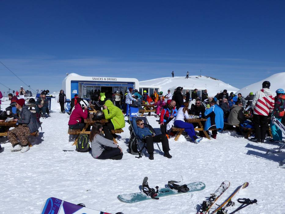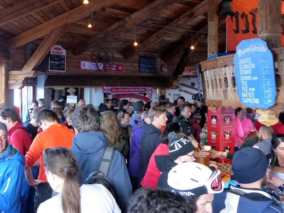 Gute Stimmung bei toller Musik bis zur letzten Talfahrt. Die Parasol-Schirmbar ist der Mittelpunkt der großen, nach Süden gerichteten Terrasse vor dem Alpincenter.