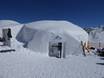 Auf der Sonnenterrasse des ICE CAMP lässt es sich bei chilligen Sound entspannen. Im Iglu gibt es auch eine Bar und Musik. 60 Tonnen Eis und 2.500 Kubikmeter wurden für den Bau des ICE CAMP verwendet.