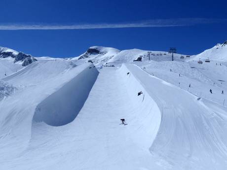 Das Kitzsteinhorn bietet weltklasse Snowparks und eine Superpipe mit 150 m Länge und 6,5 m Höhe. Die Parks am Kitzsteinhorn werden von einer motivierten Shape-Crew täglich betreut und perfekt in Form gehalten, damit dem ultimativen Freestyle-Spaß auch sicher nichts im Wege steht. Am Maiskogel gibt es einen kleinen Snowpark für Kinder.