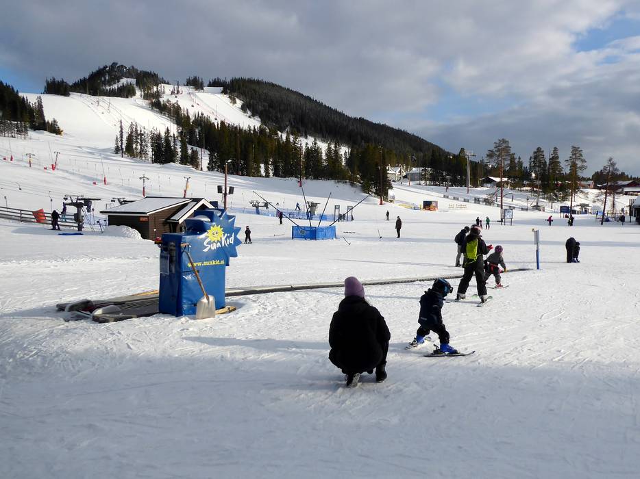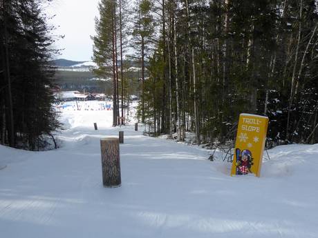 Der große Kinderbereich befindet sich am Tranantorget und umfasst ein Förderband und mehrere Tellerlifte. Hier können die Kleinen auf ganz leichten Pisten dem Wintersport nachgehen. Lustige Figuren und verschiedene Slalomstrecken runden das Angebot ab.