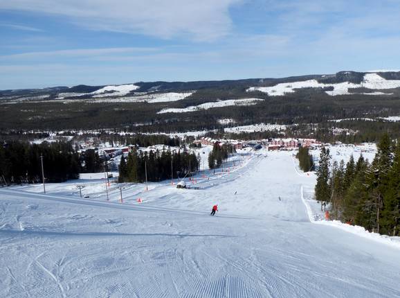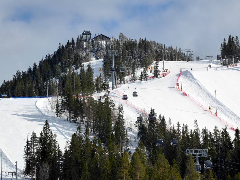 Blick auf das Skigebiet Kläppen Mit der Gondol Sälen geht es auf den Gipfel Skigebiet Kläppen mit moderner Gondelbahn