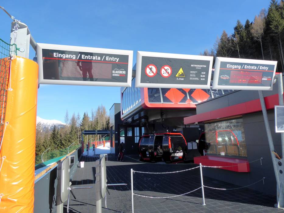Die Ausschilderung auf den Pisten ist sehr gut. An jeder Abzweigung sind Schilder angebracht und digitale Informationen findet man an mehreren Lifteinstiegen. An der Talstation und an der Bergstation des K-Expresses findet man digitale Informationen zum aktuellen Betriebsstatus. Die Anlagen und Markierungen sind in einem einheitlichem Design (rot/schwarz).