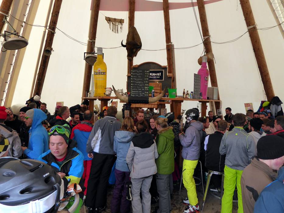 Bevor es ins Tal geht kann man bei guten Drinks und fetziger Musik im Tipirama den Skitag ausklingen lassen. Hier herrscht super Stimmung bis zur letzten Talabfahrt.