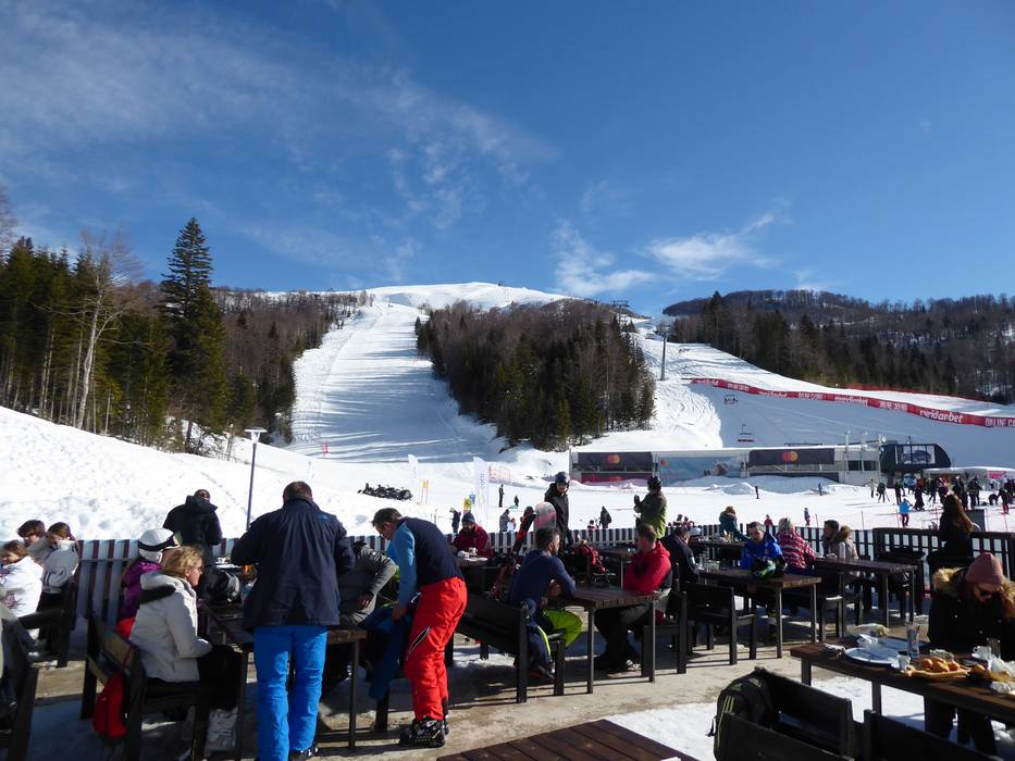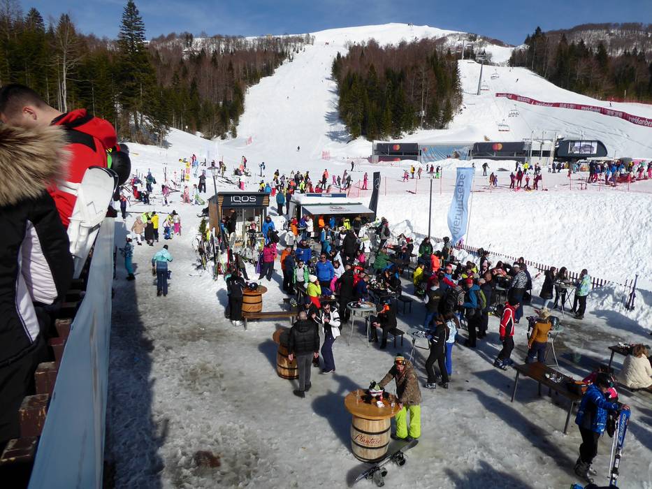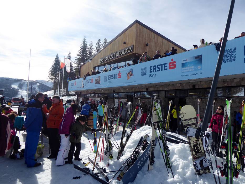 Im Restoran Troglava kann man den Skitag sehr gut ausklingen lassen. Die große Sonnenterrasse lockt zum Verweilen. An den Wochenenden sorgt ein DJ für Stimmung.