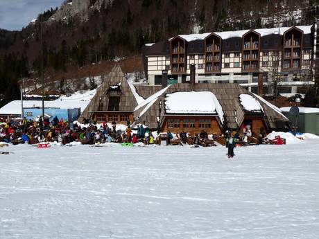 Das Restoran Troglava bietet ein sehr schönes und bedientes Restaurant. Eine große Sonnenterrasse rundet das Angebot ab. Es werden Frühstück, Suppen, Pizza, Grillgerichte, Steaks, Burger und Salate von sehr hoher Qulität serviert. Ab dem Nachmittag kann man zum Après-Ski übergehen.