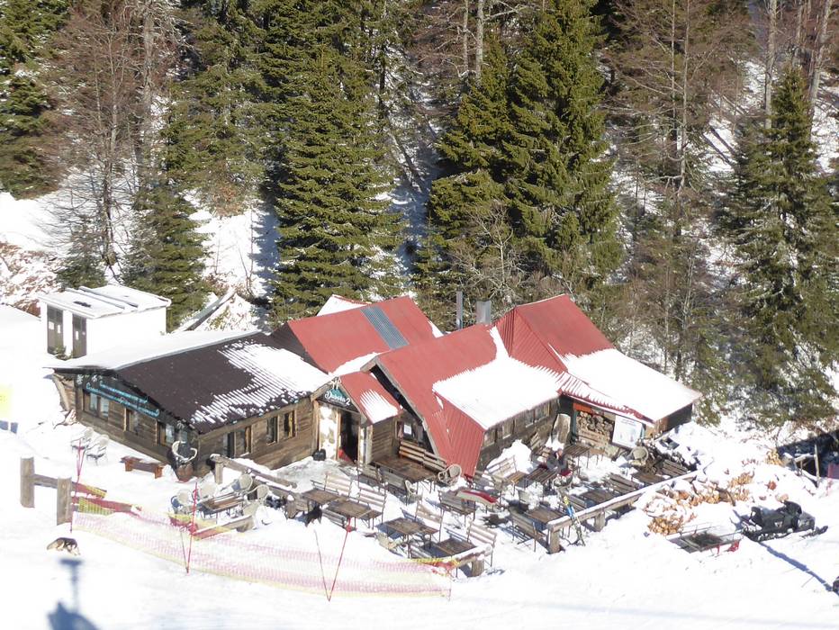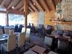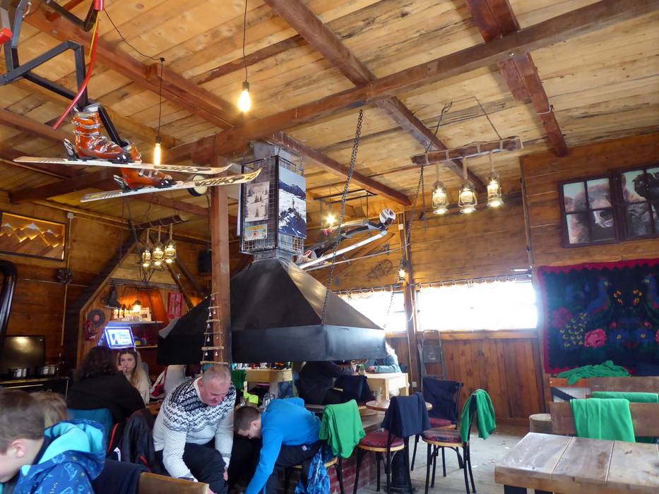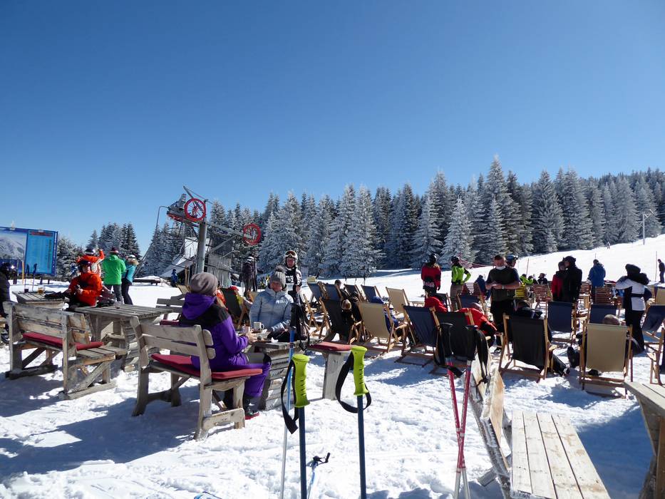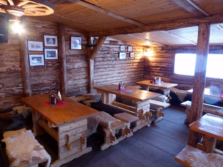 Die Skihütte bietet regionale Spezialitäten vom Grill. Sehr beliebt ist hier das Spanferkel. Eine gute Weinauswahl und Liegestühle runden das Angebot ab.