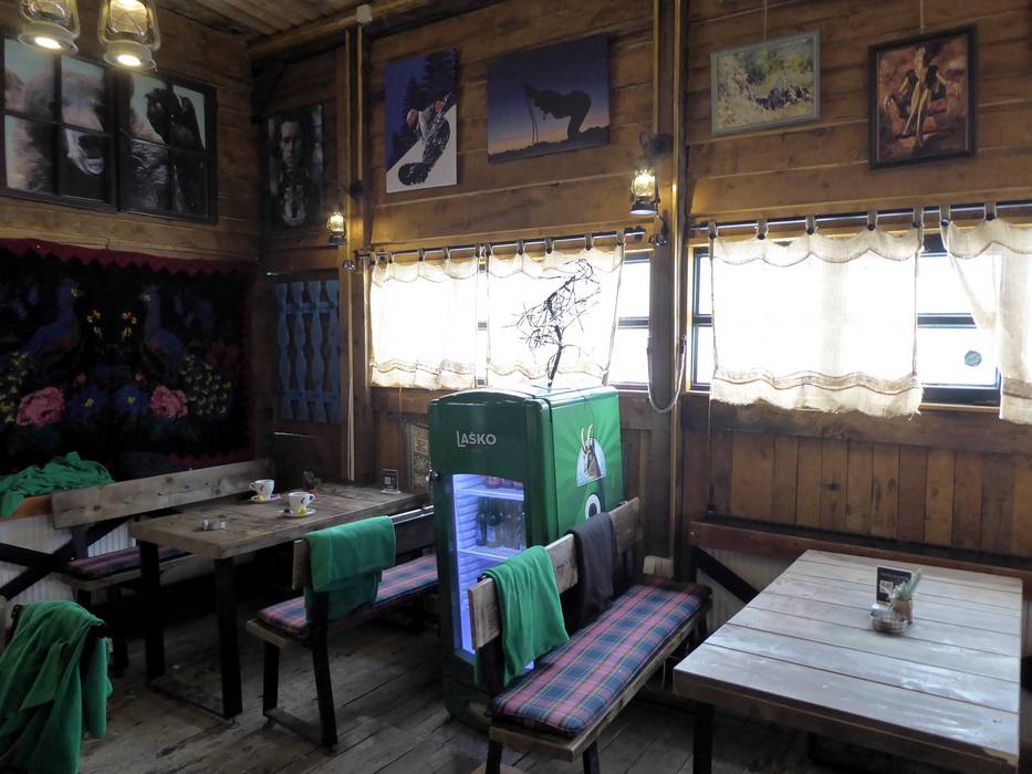 Die urige Hütte bietet einen offenen Kamin und sehr gute einheimische Getränke, wie Kuvana Rakija oder Glühwein. Die Küche bietet Hausmannskost und man wird freundlich bedient.