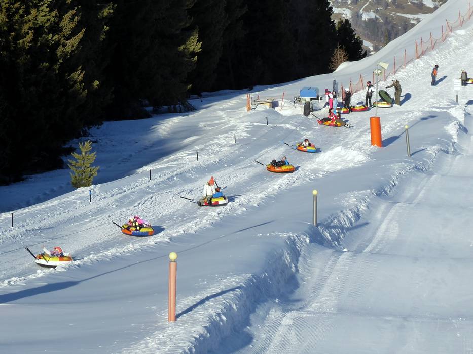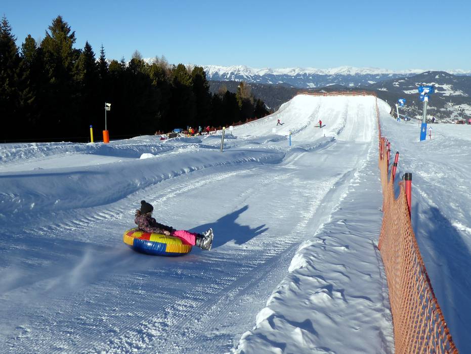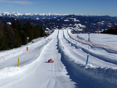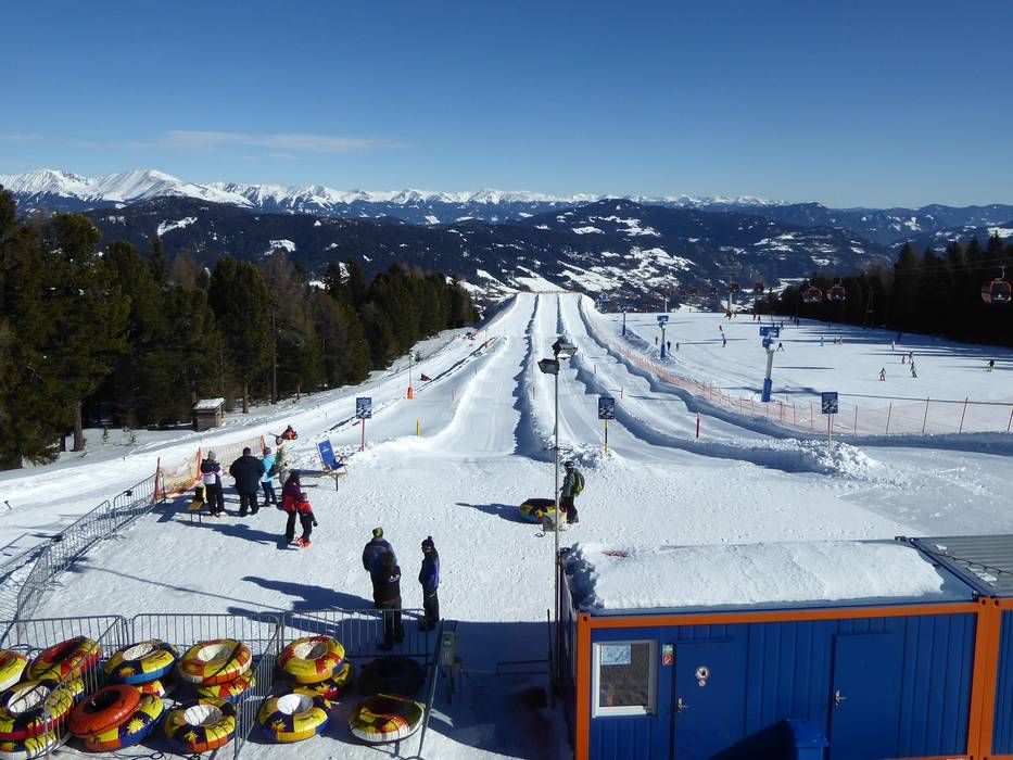 Der Tubingpark liegt direkt an der Bergstation der Gondelbahn Kreischberg 10er. Per Tube saust man auf Bahnen den Hang hinunter. Mit dem Tubinglift geht es bequem wieder zum Start.