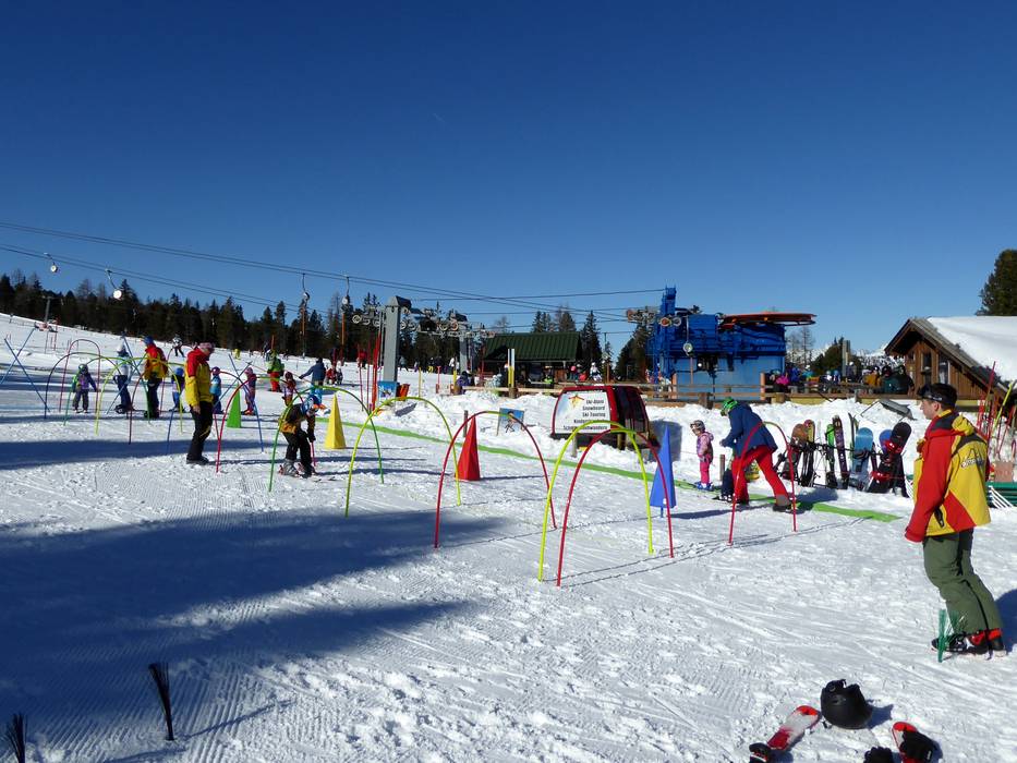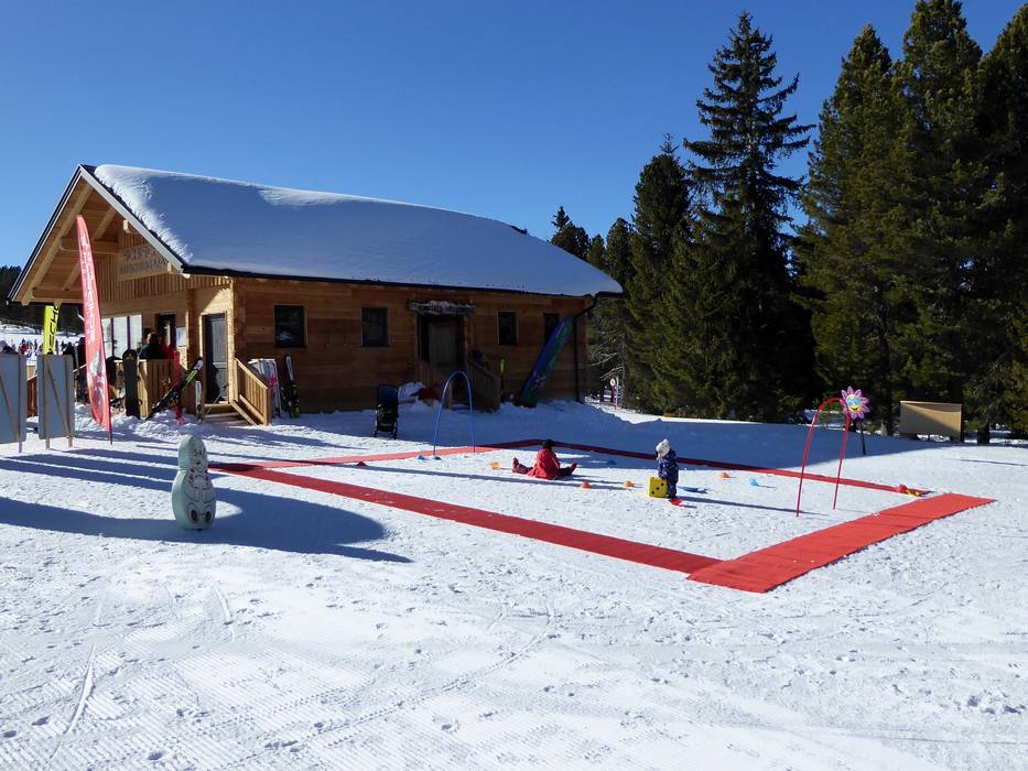 An der Bergstation der Gondelbahn Kreischberg 10er gibt es ein ideales Anfängergelände: Zauberteppich, Babylift, Miniwellenbahn und Schlepplift Kreischi
