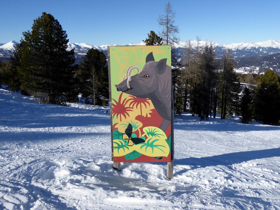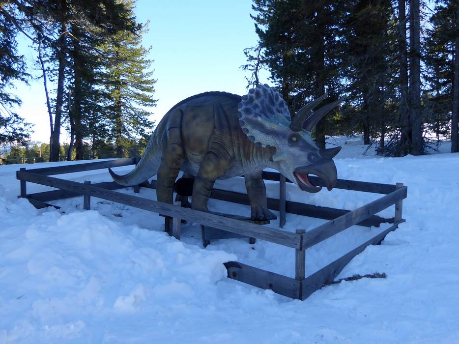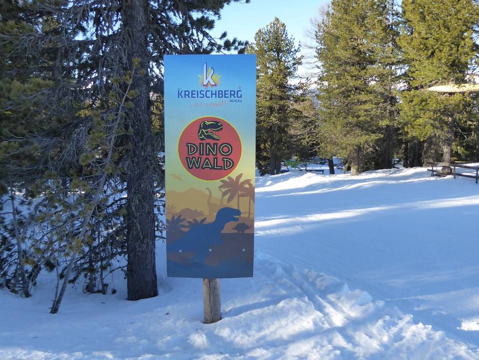 Beim Kreischi-Lift warten gutmütige Dinosaurier im Zirbenwald.