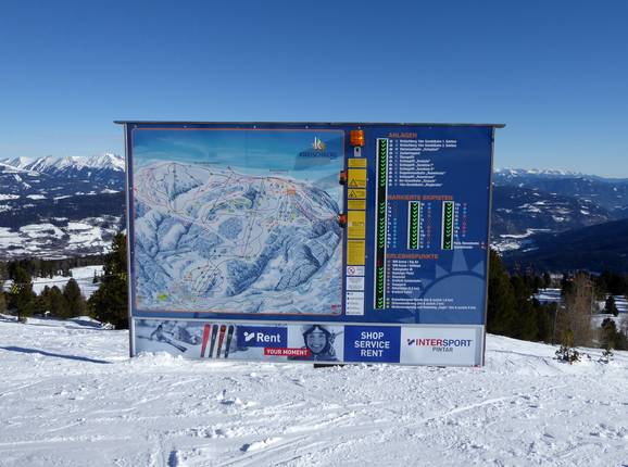 An den Informationstafeln an den Tal- und Bergstationen werden aktuelle Informationen wie der Öffnungsstatus der Pisten, Lifte und Erlebnispunkte angezeigt. Pistenleittafeln sind ausreichend vorhanden und helfen bei der Orientierung auf den Pisten. An zahlreichen Knotenpunkten stehen Ausschilderungen und Wegweiser.