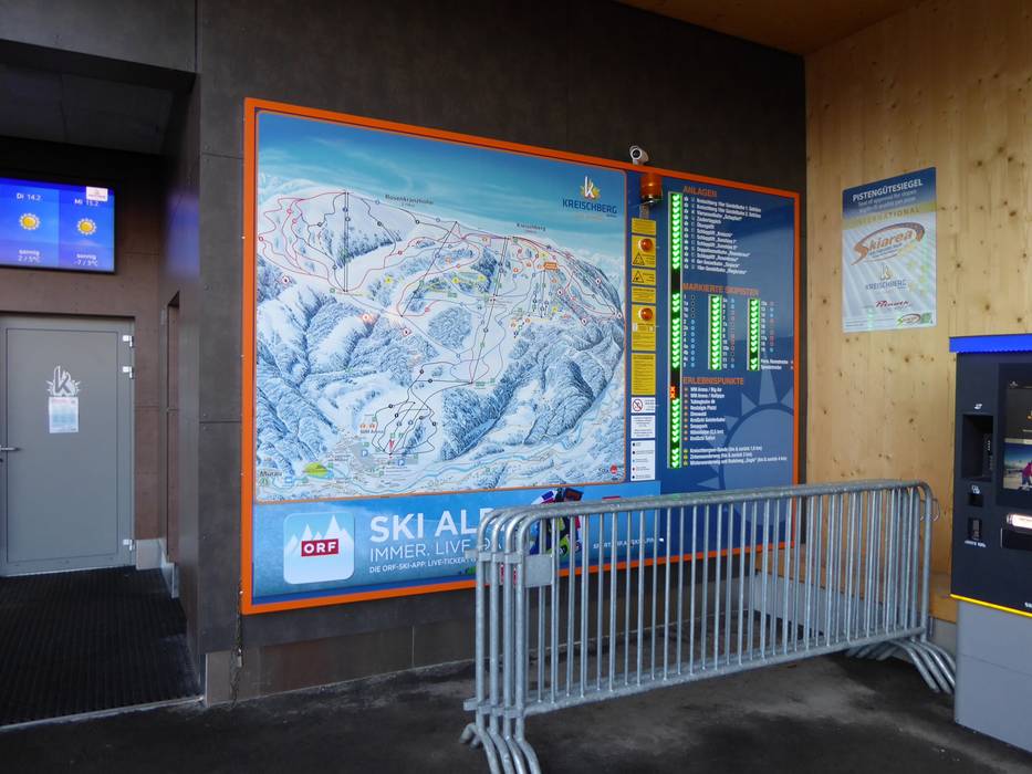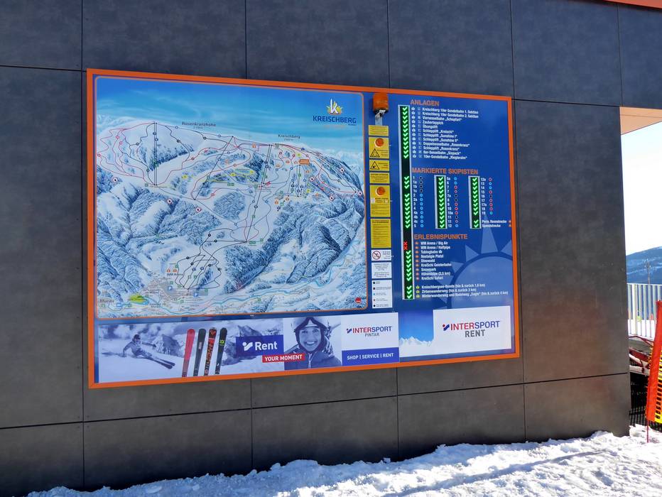 Orientierung (Pistenplan, Informationstafeln, Ausschilderung) und Sicherheit im Skigebiet Kreischberg