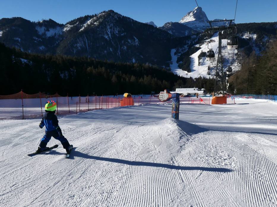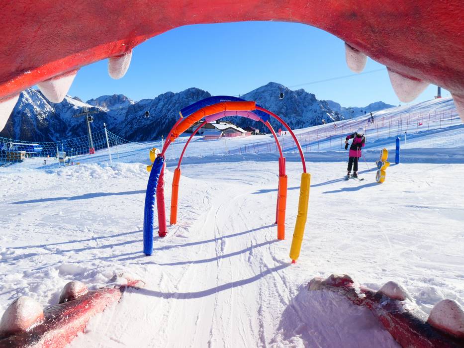 Bei der Gondelbahn Miara finden Kinder eine schöne Piste mit lustigen Elementen.