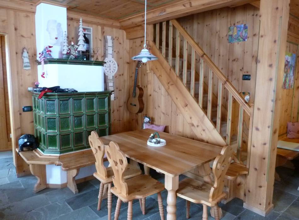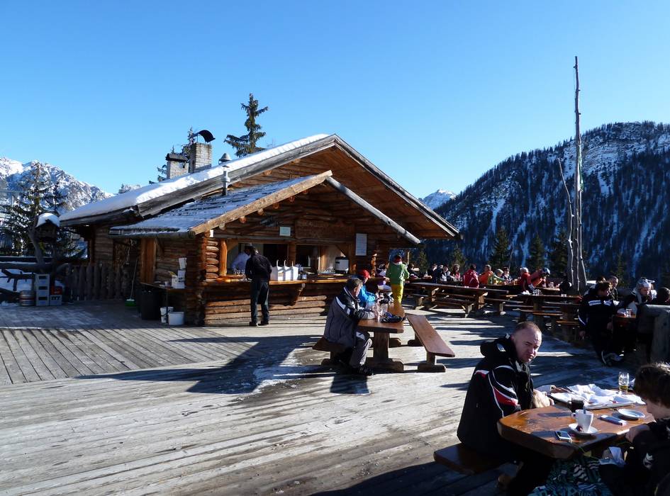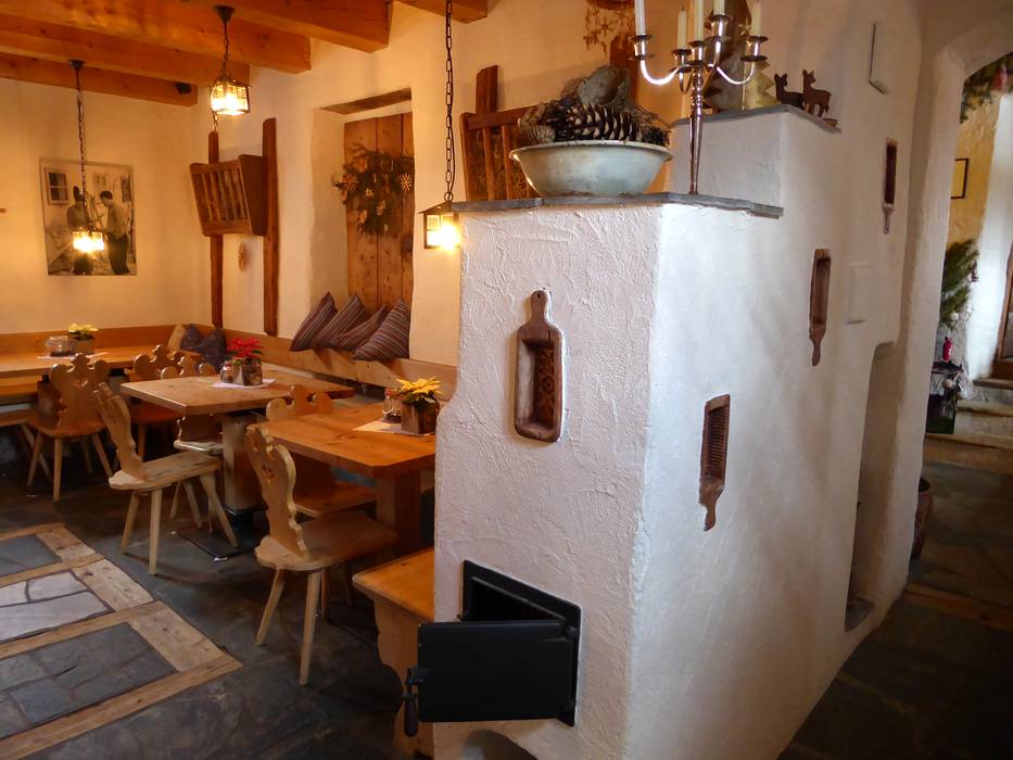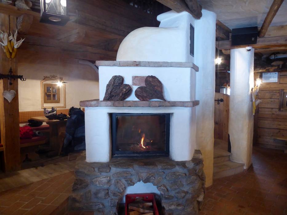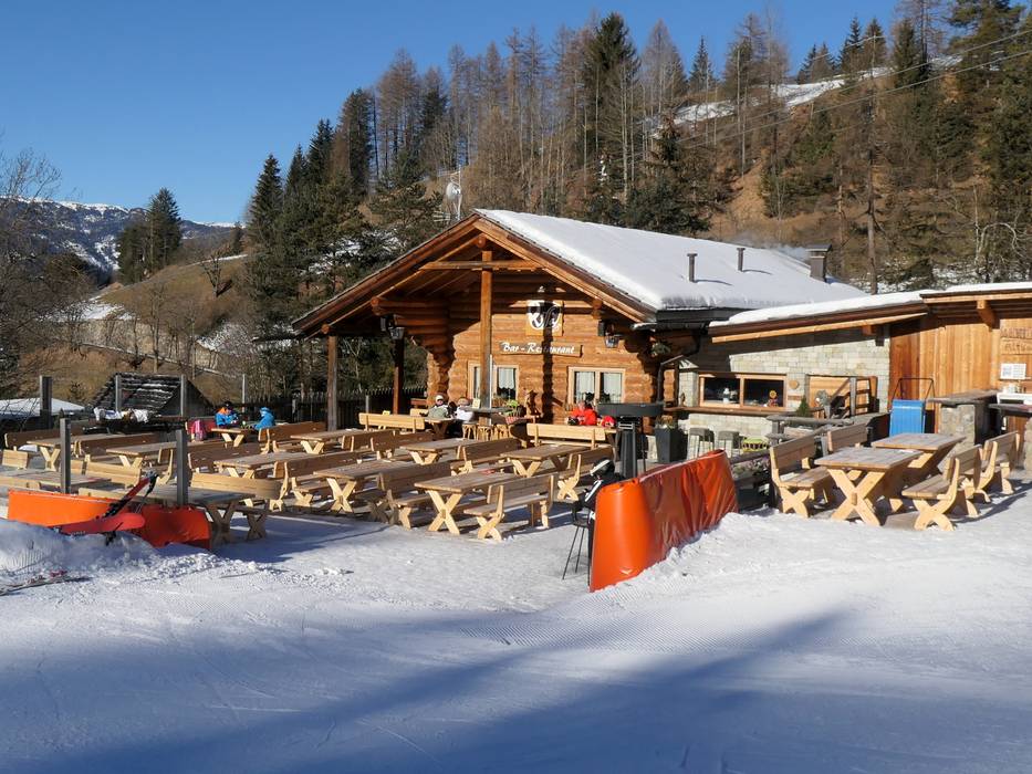 Die Hütte liegt fast immer in der Sonne und bietet eine nette Bar und Sonnenterrasse. An kalten Wintertagen wärmt der Kachelofen in der Stube.