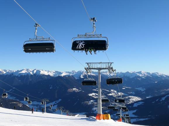 Auf dem Kronplatz gibt es nur noch moderne Sessel- und Gondelbahnen. Mehrere Kabinenbahnen sind sogar mit beheizbaren Ledersitzen ausgestattet. Ein Highlight ist die Ried-Gipfelbahn, die die Wintersportler direkt vom Bahnhof Percha auf einer Gesamtlänge von über 6 Kilometern auf den Gipfel des Kronplatzes befördert. Um die Sicherheit für Kinder zu gewährleisten, werden sogar in den Anfängerbereichen Gondelbahnen gebaut. Am Kronplatz gibt es die kürzeste Achter- und Zwölfergondelbahn weltweit.