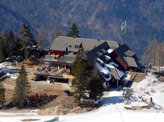 Im Skigebiet Krvavec kann man in einigen Unterkünften mitten im Skigebiet übernachten. Die Anfahrt erfolgt entweder mit der Gondelbahn oder mit dem Auto über schmale Bergstraßen. Das Hotel Krvavec ist das höchste Hotel in Slowenien.