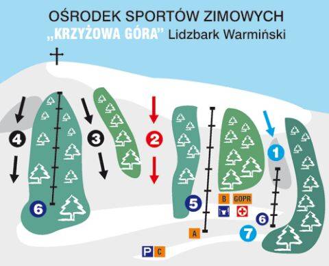 Pistenplan Lidzbark Warmiński/Krzyżowa Góra Saison ---- !!! closed/stillgelegt