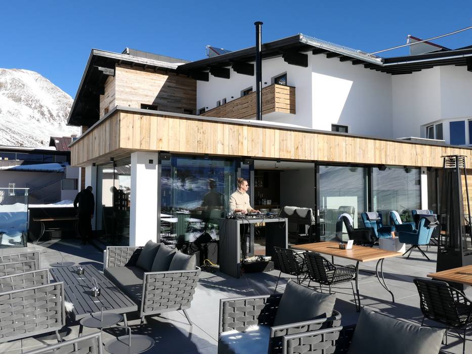 Auf beiden Sonnenterrassen kann man entspannt den Tag ausklingen lassen bei Cocktails, Wein, Bier und traditionellen Edelbränden.