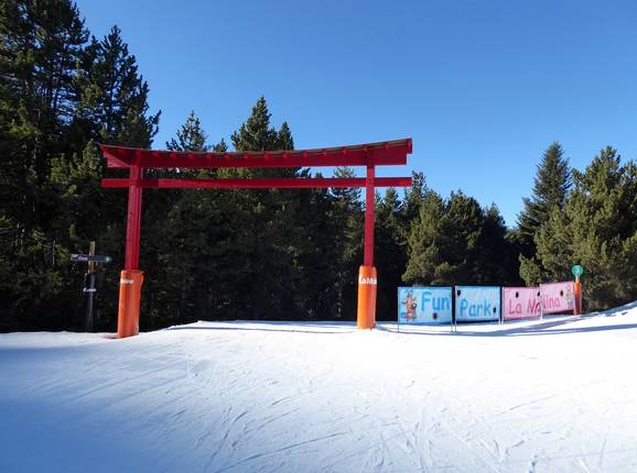 Der leichte Funpark in La Molina ist speziell auf Kinder ausgelegt. Er befindet sich direkt neben dem Snowpark Trampolí und bietet eine spaßige Abfahrt mit lustigen Figuren und Hindernissen. Zudem findet man dort auch den Chikipark und einen Mini-Boardercross.
