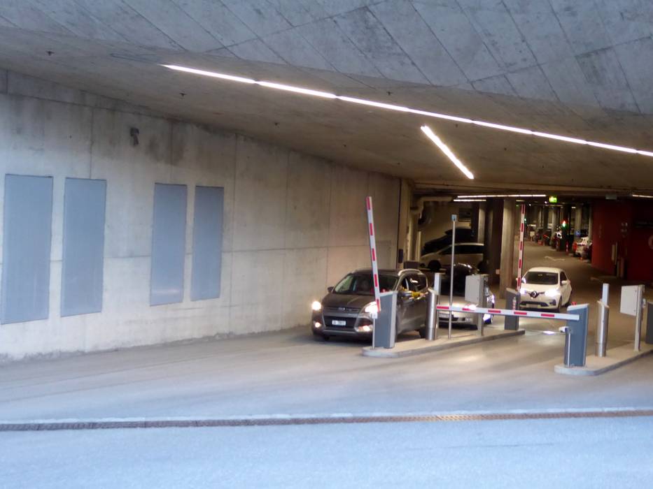 Parkplätze: ausreichend vorhanden, Parkhaus, asphaltierter Platz, kostenpflichtig