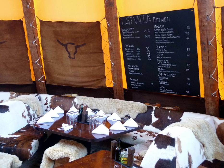 Fleisch-Speziälitäten von offenem Feuer und eine gute Weinauswahl sind das Highlight des La Vacca. Im Tipizelt kann man hier hervorragend speisen.