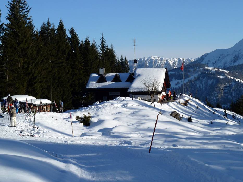 Die urige Alp war einmal ein Kuhstall. Heute werden hier Alpkäsespezialitäten wie Raclette und Fondue serviert. Bei schönem Wetter lockt die große Sonnenterrasse und die Schneebar Alp Nagens.