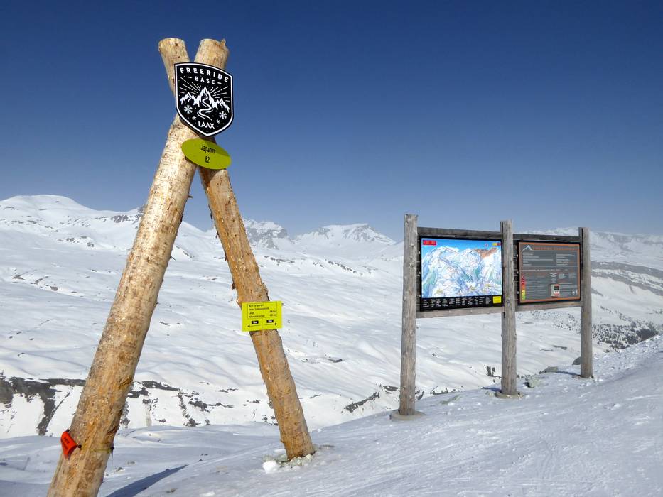 Orientierung (Pistenplan, Informationstafeln, Ausschilderung) und Sicherheit im Skigebiet Laax/​Flims/​Falera