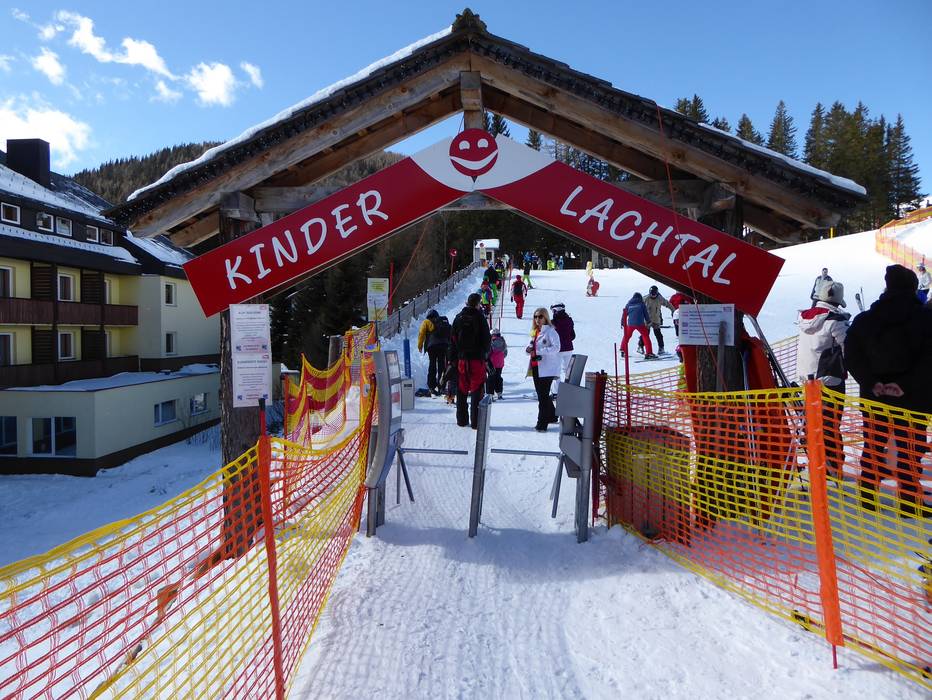 Das Kinderlachtal ist ein ideales Kinderareal mit Zauberteppich und Seil-Lift. Geschützt und sicher können die Kleinen hier das Skifahren lernen. Ein Mini-Slalom, ein Figurenparcour und eine Wellenbahn sorgen für viel Spaß.