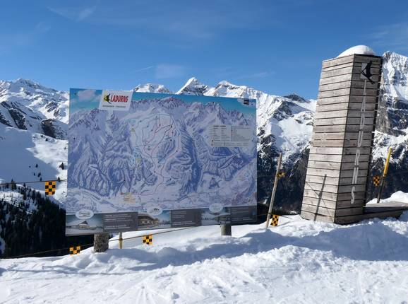 Orientierung (Pistenplan, Informationstafeln, Ausschilderung) und Sicherheit im Skigebiet Ladurns