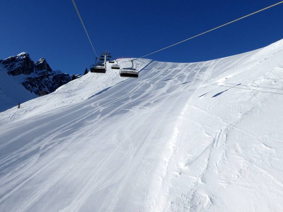 Eine mittelschwere Piste führt direkt zur Talstation Ladurns.