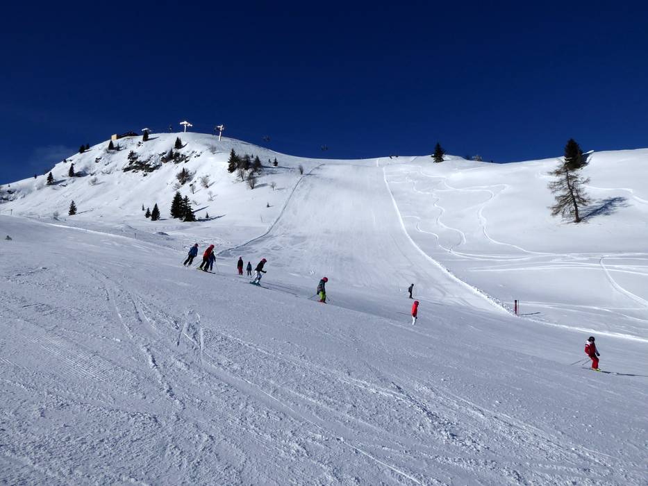 Die extrem breite Piste ist perfekt für Anfänger und Kinder.