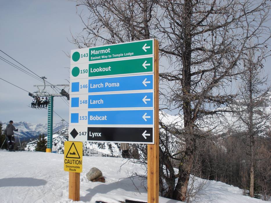 Orientierung (Pistenplan, Informationstafeln, Ausschilderung) und Sicherheit im Skigebiet Lake Louise