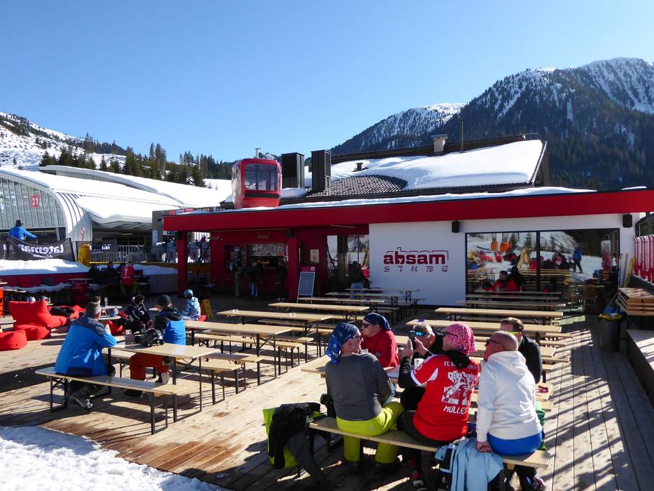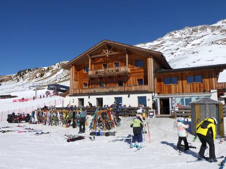 Die gemütliche Skihütte mit großzügiger Sonnenterrasse verwöhnt ihre Gäste mit herzhaften Tiroler Köstlichkeiten und regionalen Spezialitäten. In entspannter Atmosphäre lässt es sich hier wunderbar verweilen, während man die beeindruckende Bergkulisse genießt. Besonders am Nachmittag sorgt die Terrasse für beste Stimmung: Bei guter Musik und geselligem Beisammensein entsteht echtes Après-Ski-Feeling – der perfekte Ausklang, bevor es gut gelaunt auf die letzte Abfahrt geht.