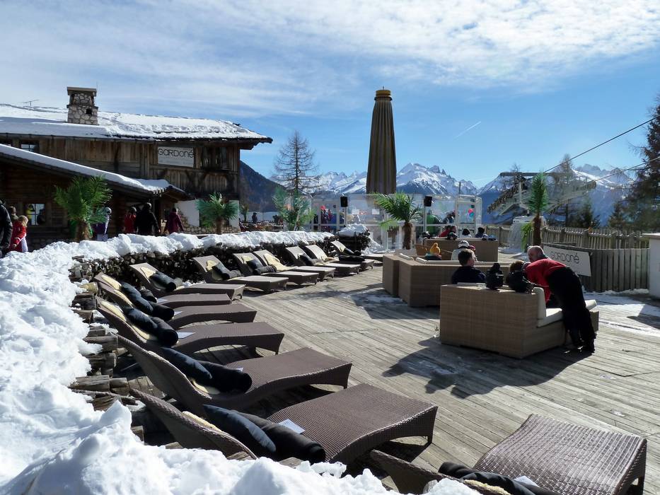 Die Baita Gardoné bezeichnet sich auch als "The Mountain Riviera", denn hier kann man unter (künstlichen) Palmen im Liegestuhl die Sonne genießen. Es gibt einen großen bedienten Teil und ein Selbstbedienungsrestaurant mit typischen Trentinischen und Südtiroler Gerichten. Im bedienten Teil kann man exklusive Weine und sehr gutes Essen bestellen.
