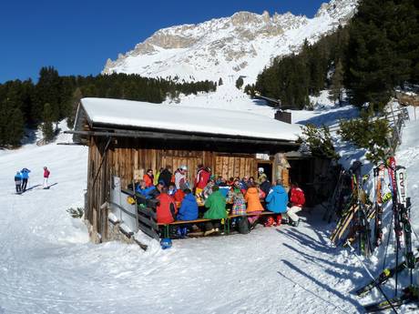 Mit der Berghütte Oberholz ist ein architektonisches Juwel entstanden. Im gesamten Skigebiet warten urige und gemütliche Hütten zum Einkehren. An allen Talstationen findet man ebenfalls Einkehrmöglichkeiten. Es werden zumeist regionale Spezialitäten aus Südtirol und dem Trentino angeboten. Man findet auch exklusive Hütten, wie z.B. die Mayrl Alm, die In.Treska, die Baita Gardoné sowie die Berghütte Oberholz.