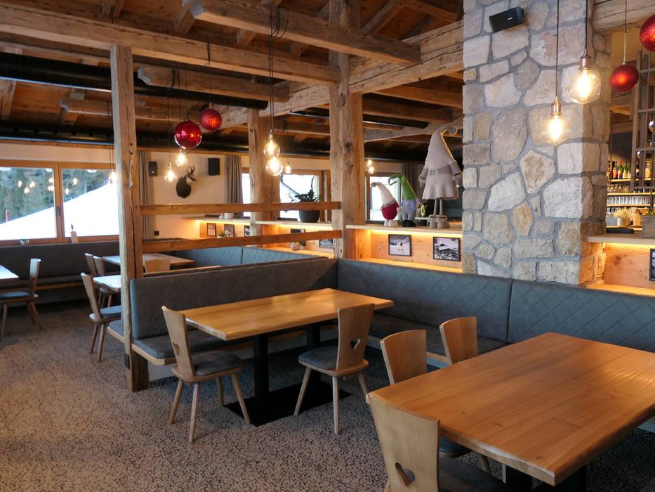 Die Skihütte für Genießer bietet eine große Sonnenterrasse, Selbstbedienungsteil und ein Bedienungsrestaurant. Hier kann man schmackhafte Vorspeisen, edle Fleisch-, Wild- und Fischgerichte und frische hausgemachte Kuchen genießen. Sehr zu empfehlen sind die Fischspaghetti.