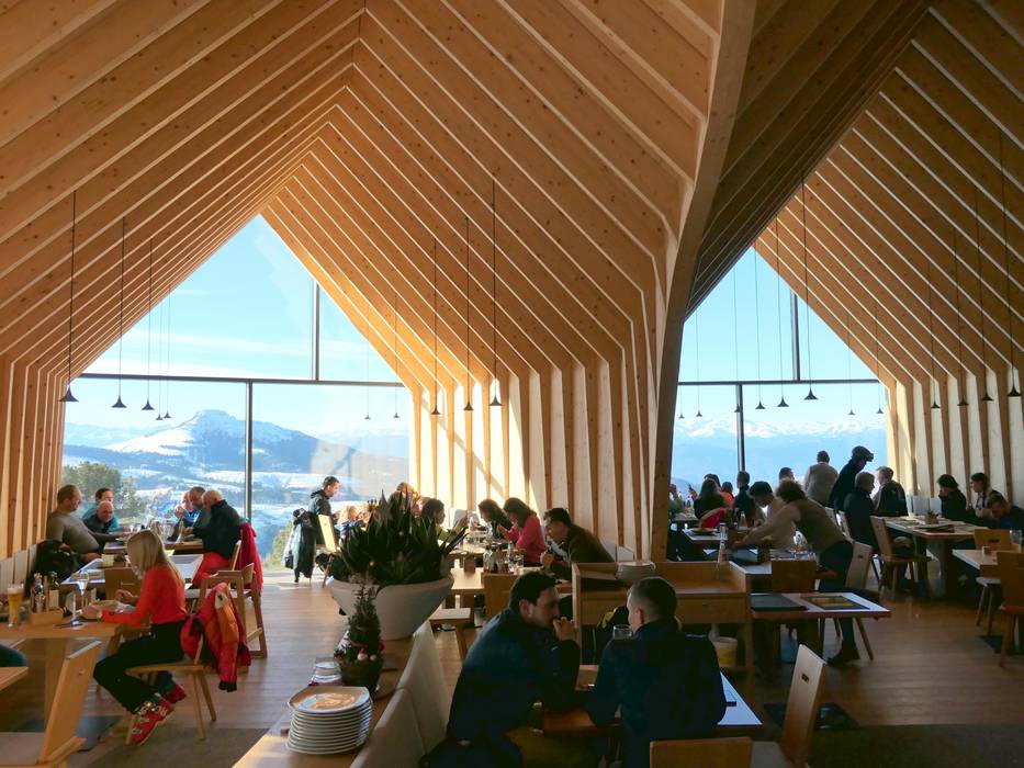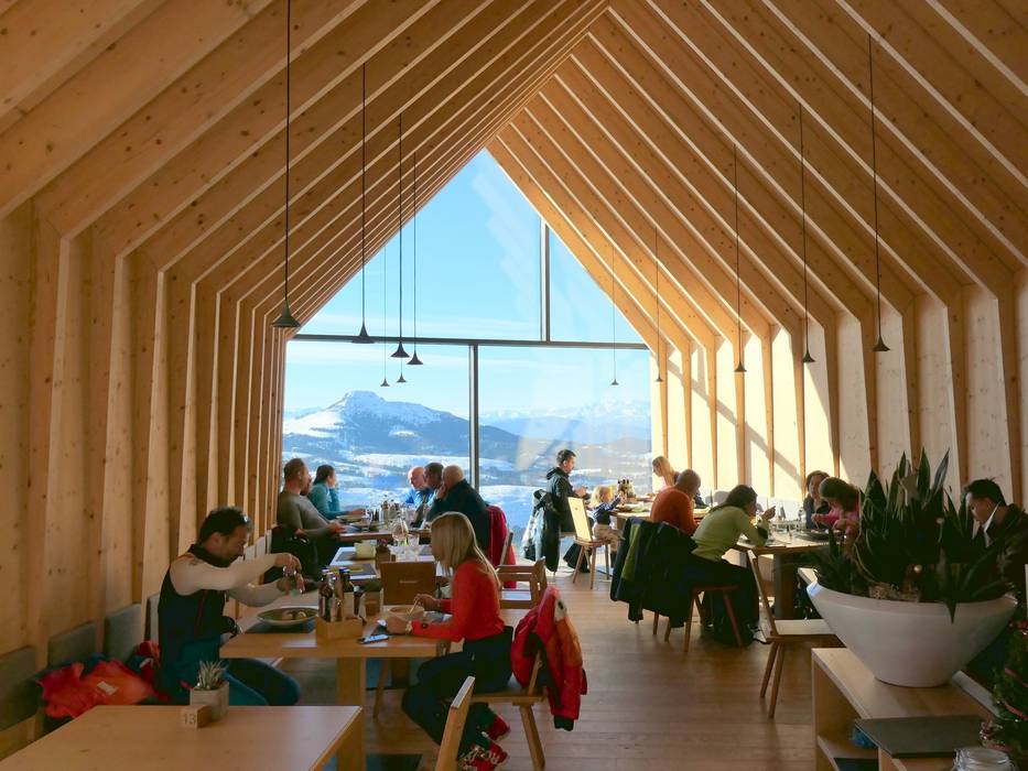 Die Berghütte Oberholz ist das architektonische Juwel in Obereggen. Über große Panoramafenster wird die Bergwelt in den Mittelpunkt gestellt. Ein gemütlicher Rückzugsort mit drei Stuben und einer großen Sonnenterrasse. Raffinierte Gerichten aus natürlichen und regionalen Produkten, frische bodenständige und innovative Spezialitäten sowie eine gut sortierte Weinkarte verwöhnen kulinarisch.