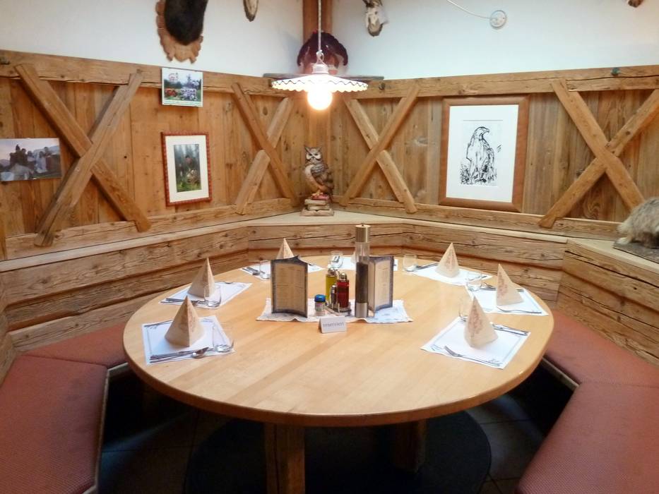 Urige und gemütliche Hütte mit typischen Südtiroler Gerichten wie Gerstensuppe, Speck und Kaiserschmarrn.