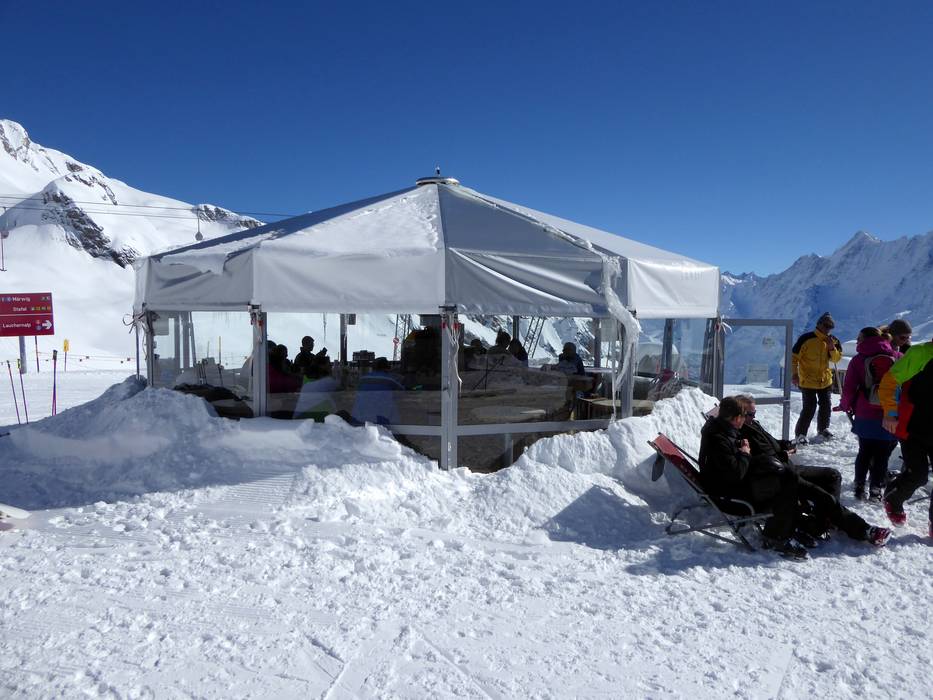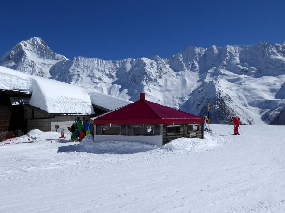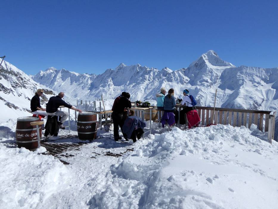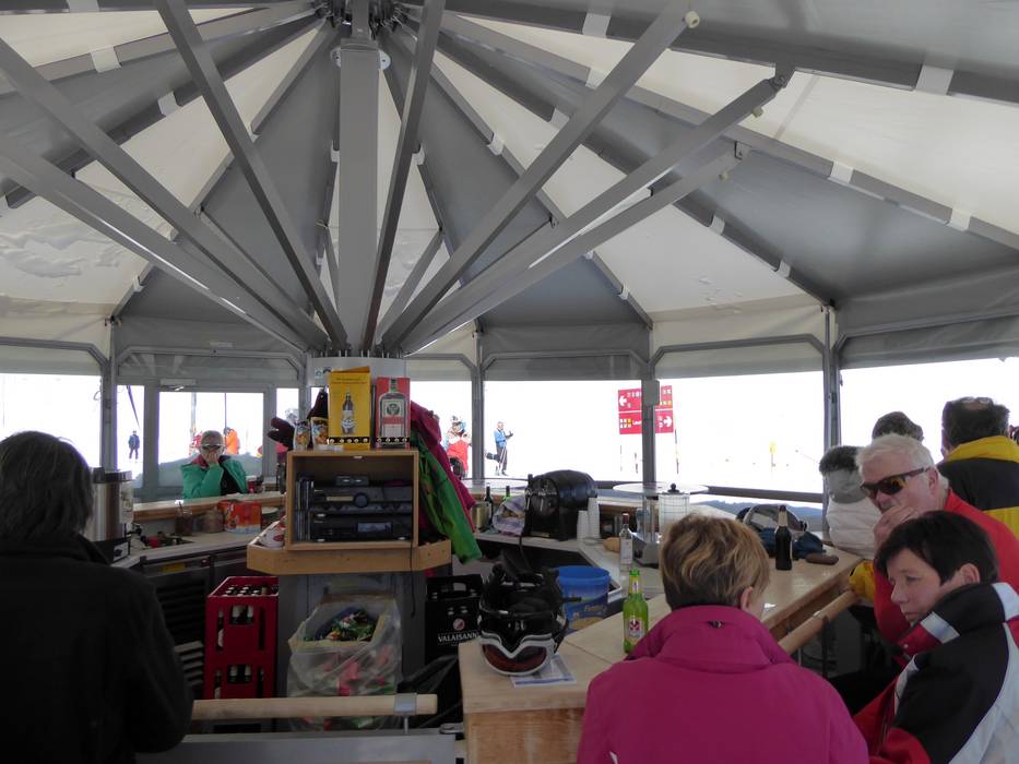 Die Schirmbar Gandegg bietet eine Sonnenterrasse und Liegestühle mit herrlicher Aussicht auf das 3934 m hohe Bietschhorn. Hier kann man den ganzen Tag über einkehren. Spätestens 16.00 Uhr ist die letzte Talfahrt anzutreten.