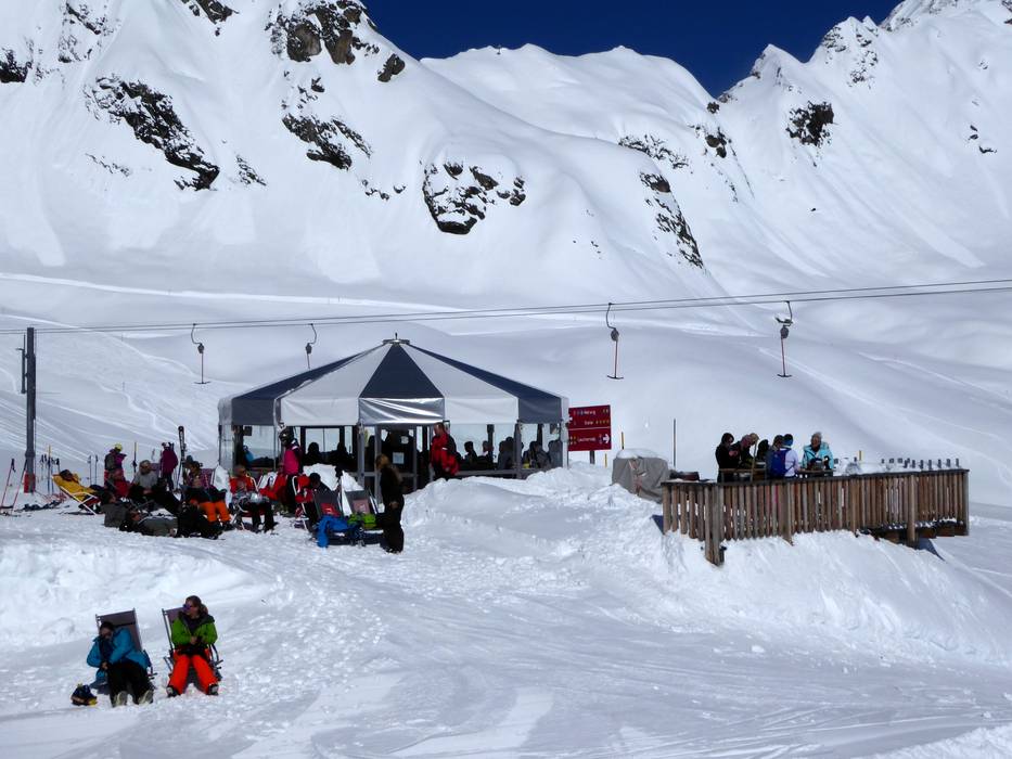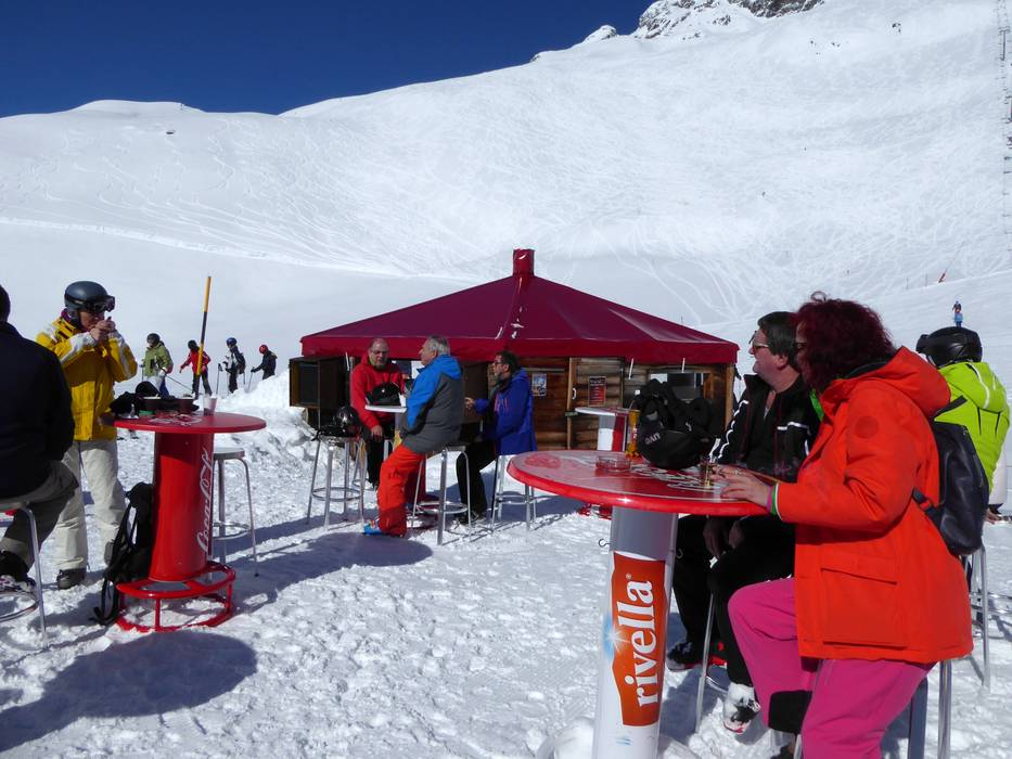 Die Pfirri Bar bietet Liegestühle und Stehtische im Freien. Hier kann man den Skitag bei Musik in gemütlicher Atmosphäre ausklingen lassen.