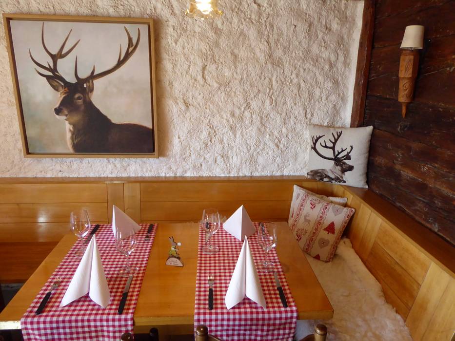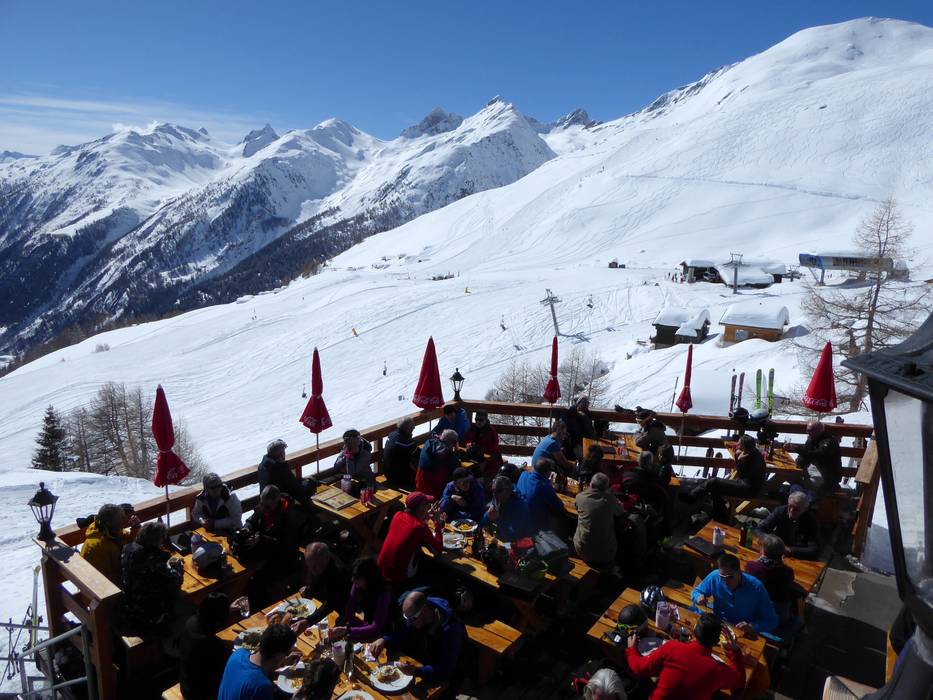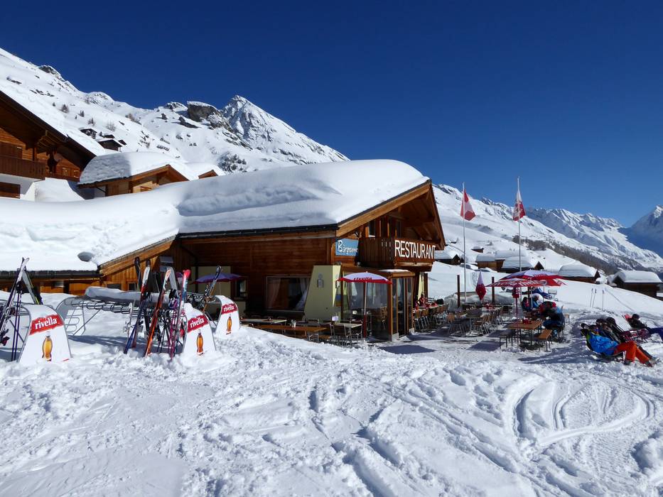 Das Bedienungsrestaurant im Chaletstil bietet traditionelle Skigerichte und Walliser Spezialitäten. Bei schönem Wetter lockt die Sonnenterrasse mit herrlichem Blick auf die umliegenden Berge.