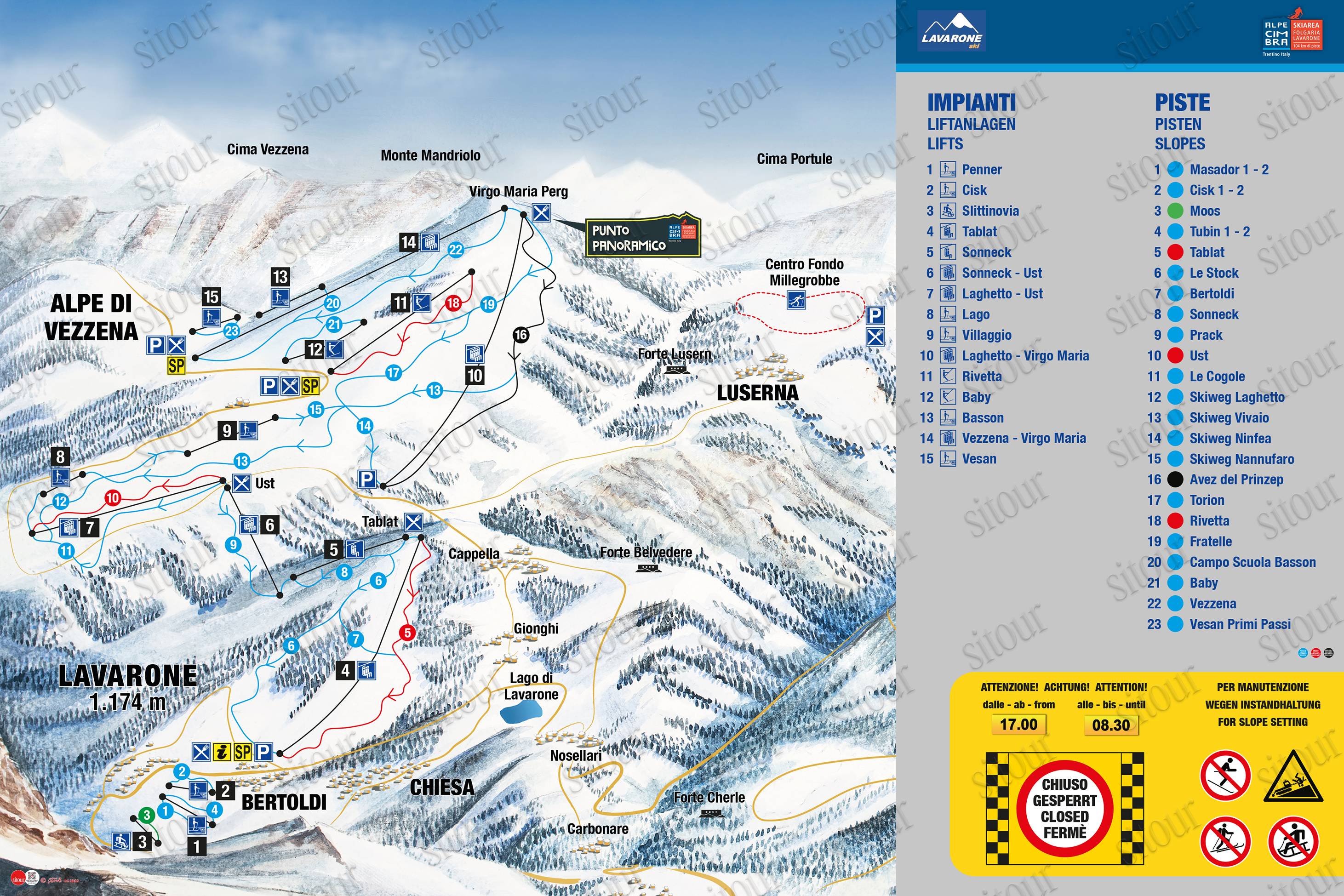 Orientierung (Pistenplan, Informationstafeln, Ausschilderung) und Sicherheit im Skigebiet Lavarone
