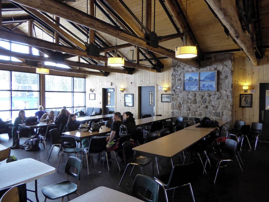 In der gemütlichen Lodge kann man wunderbar einkehren. Im Erdgeschoss gibt es ein Selbstbedienungsrestaurant. Im Obergeschoss wartet ein Pub mit Bar und Kamin.