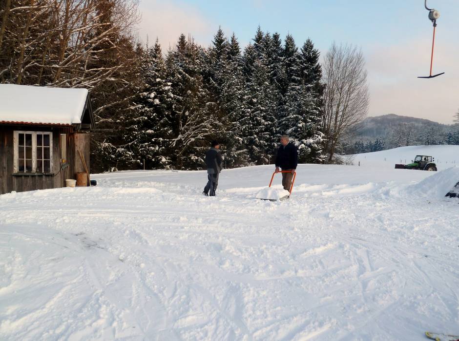 Nachdem das Skigebiet in privater Hand der Familie Fahmüller ist, präpariert man hier mit viel Liebe zum Detail mit einer Pistenraupe den Skihang. Die ganze Familie hilft auch noch händisch mit, um Steine von der Piste zu räumen.