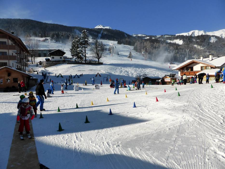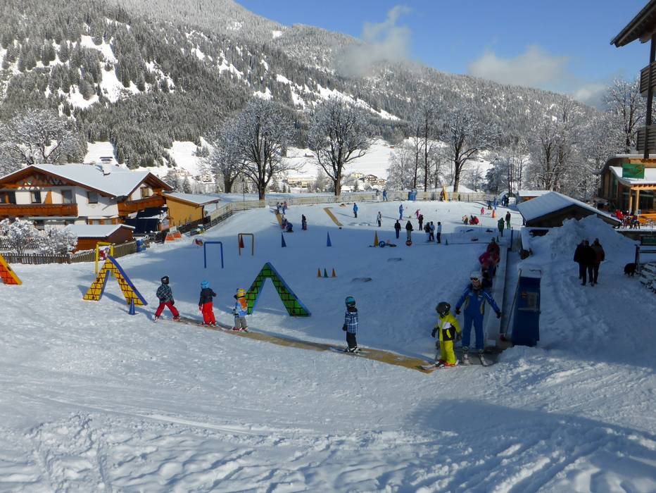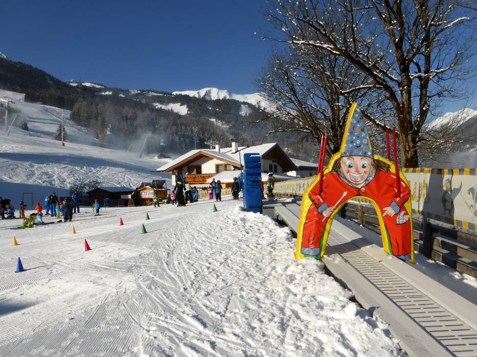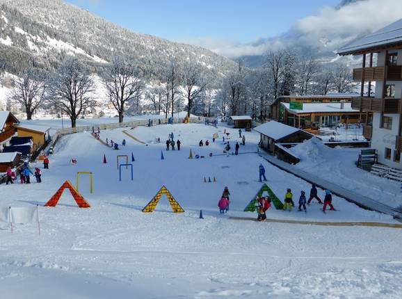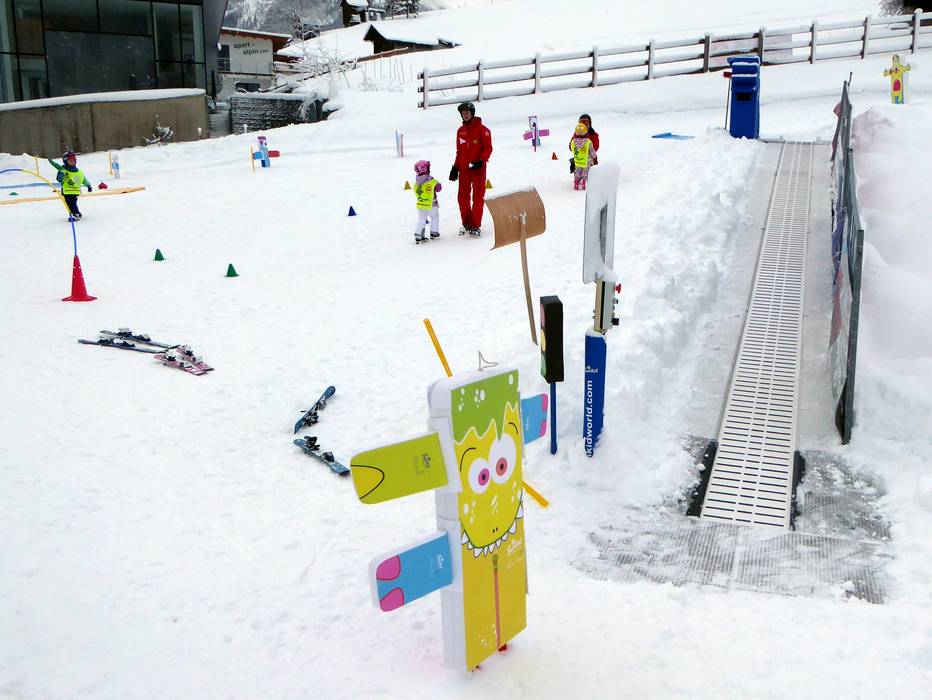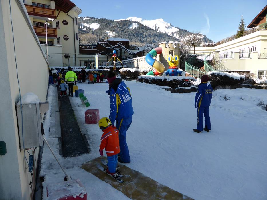 Das Alpenrose Familux Resort bietet für seine Hotelgäste ein besonderes Angebot. Auf dem Hotelgelände wird das Dach der Tiefgarage gekühlt und beschneit. Die ganz Kleinen (2,5-3,9 Jahre) lernen hier das Skifahren. Regelmäßig werden sie vom Maskottchen Bobo besucht.