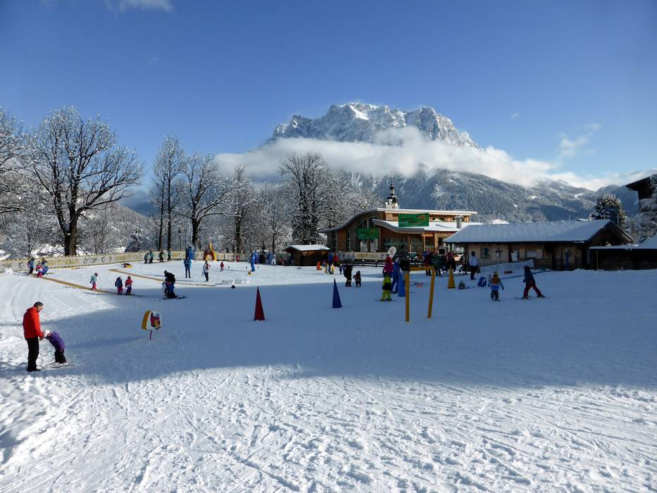 Das Kinderland befindet sich in Lermoos im Oberdorf bei der 8er-Gondelbahn Familyjet. Mit Zauberteppich und lustigen Figuren lernen die Kinder mit viel Freude das Skifahren.