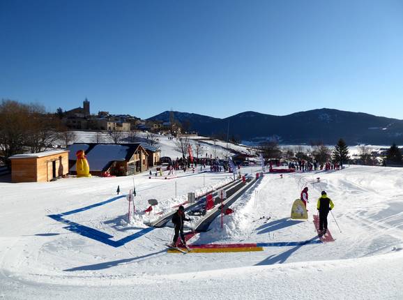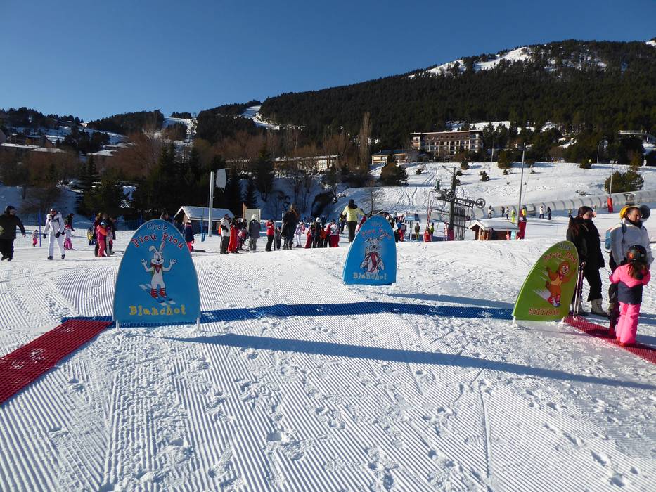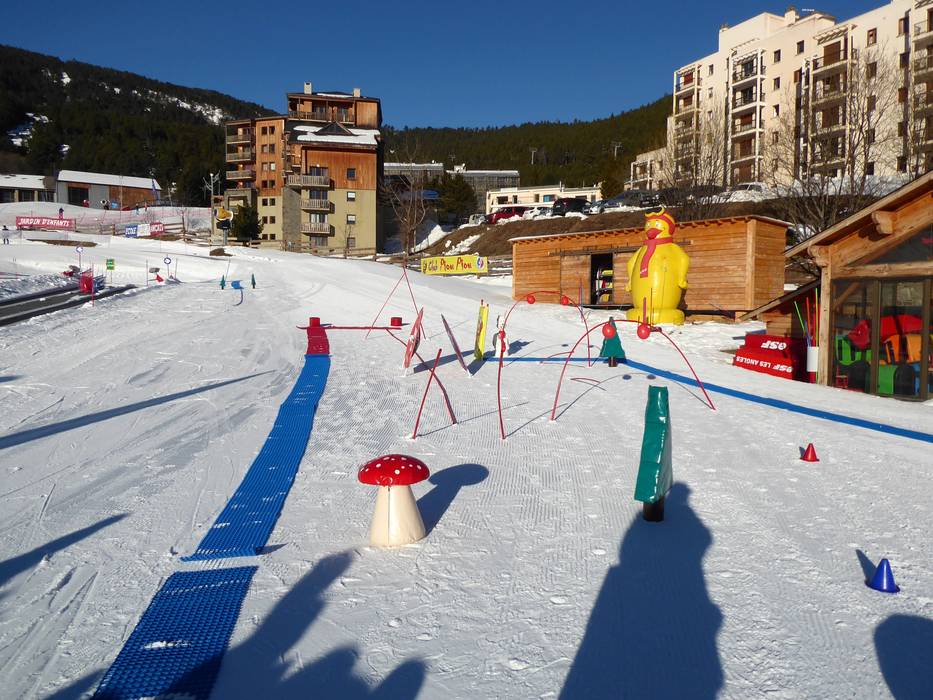 Mitten im Ort Les Angles befindet sich das Kinderland Club Piou Piou mit Kinderbetreuung ab 3 Jahren. An mehreren Förderbändern und mit lustigen Figuren können die Kleinen hier ganz in Ruhe den Wintersport erlernen. Direkt daneben befinden sich weitere Förderbänder und ein Übungslift.